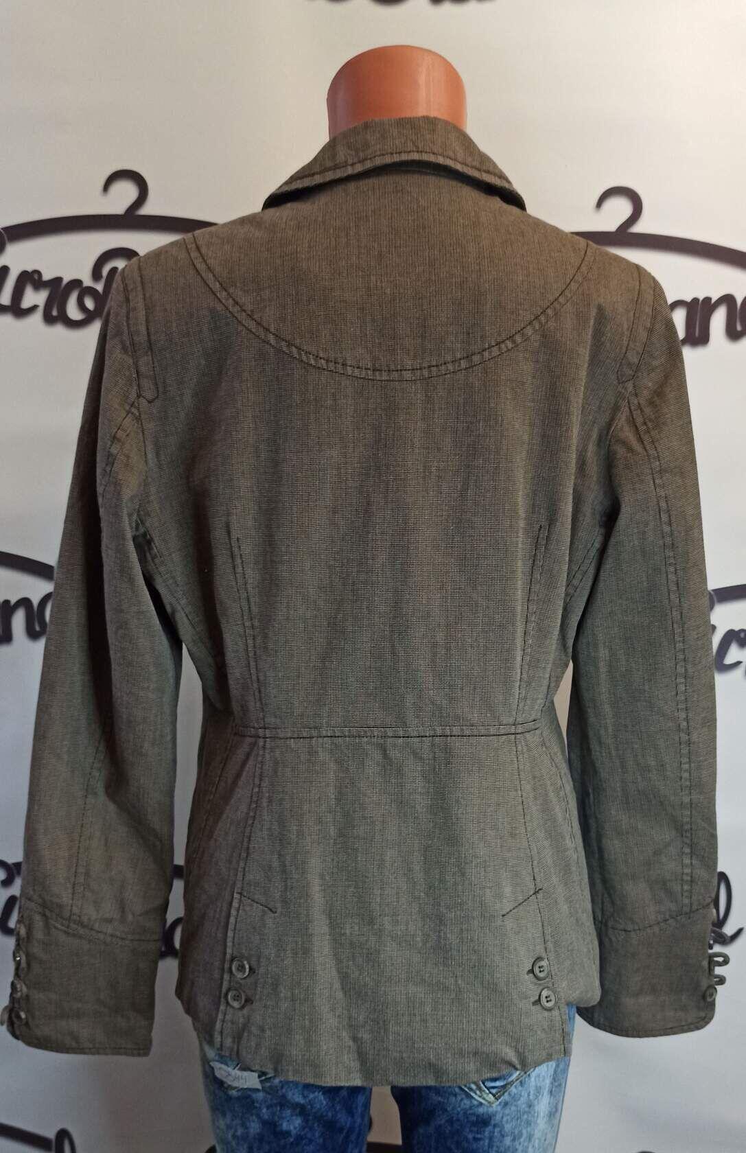 Размер: 46 Состав: 80% — полиэстер, 20% — хлопок Замеры: длина — 61, ПОГ — 50, рукав — 62, плечи — 40 На подкладке есть катышки Разошлась подкладка под левым рукавом